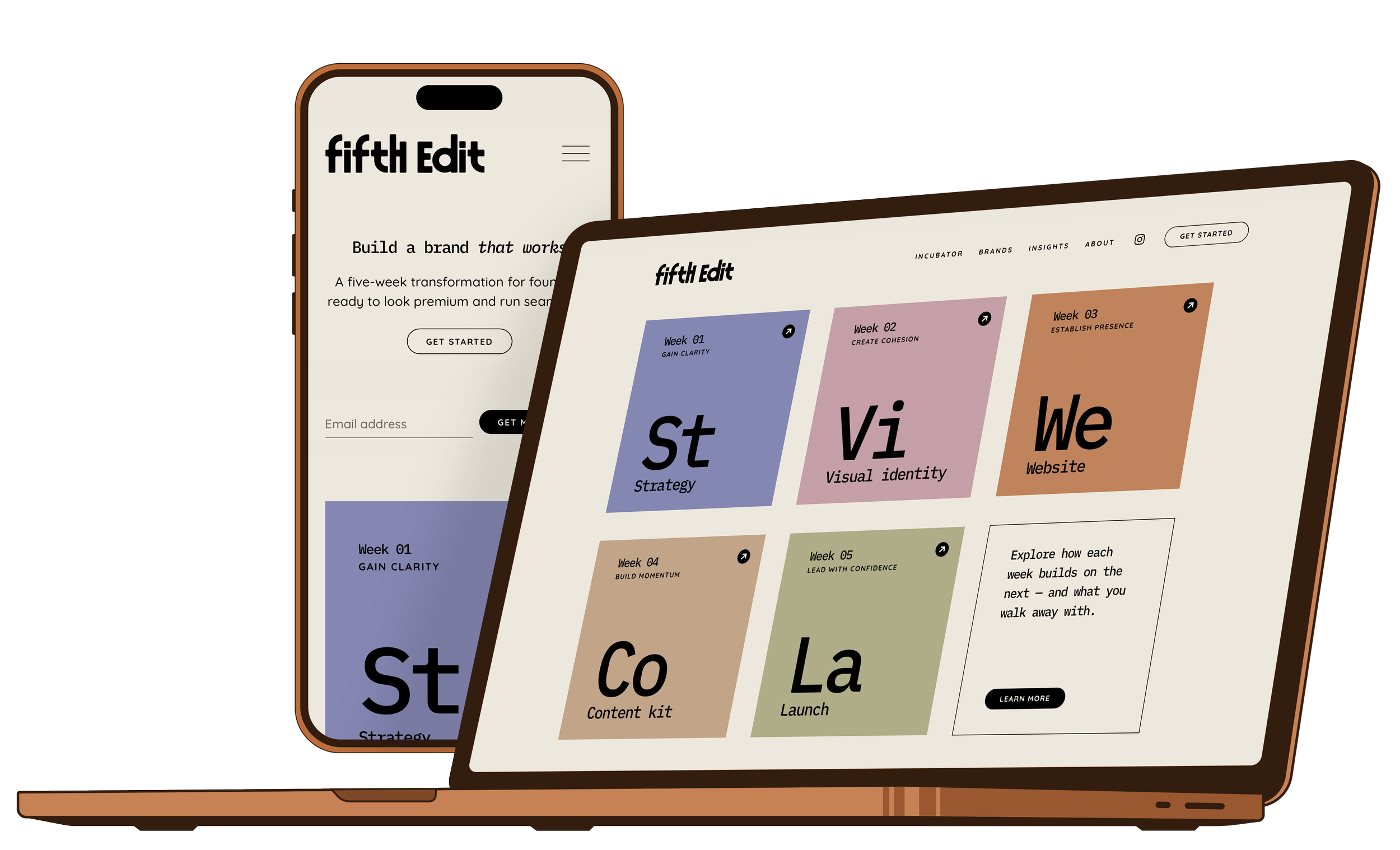 The Brand Incubator takes a full-system approach, combining strategy, design, web, and implementation into one seamless process. You’ll walk away with a complete, functional brand — not just files or a static guide, but clarity, confidence and a toolkit you can actually use.